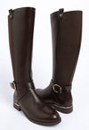 Zip -Up Knee High Winter Boots with comfortable almond toe and buckle detail around ankle. Upper Material: Vegan Leather Lining Material: Vegan Leather Outer sole: TPR Closed Round Toe Knee High Boots Side Zipper Opening Durable TPR Outsole Almond ToeMetal Buckle Detail SH2555