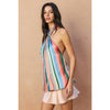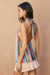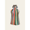 Available for presale, orders for the Rude Ver Top will ship first week of February when product is released! Vibrant stripe print satin halter neck top with drapy detail. Model is 5'9" and wearing size Small. - Halter neck with back tie closure - Gathered fabric detail at the front bodice - Open back - Elastic band on the back - Pull on closure