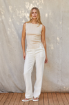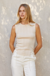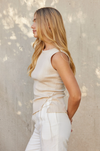 SELF: 55% Linen 45% Cotton ECO-CONSCIOUS - Crew neckline - Sleeveless - Fit bodice - Front tie detail on sides - Model is wearing size small - Imported