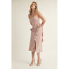 Introducing the La Nuit Pink Dress—a stunning midi silhouette that effortlessly blends elegance with playful charm. This piece features a graceful cowl neckline, delicate spaghetti straps you can adjust to fit just right, and eye-catching cascading ruffles that add movement and dimension. The asymmetric design and back princess seams create a flattering, sculpted look, while the hidden zipper keeps the aesthetic clean and polished. Perfect for elevating your everyday style or making a statement at special occasions.