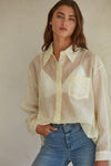 Sheer silky button down perfect for layering with a bralette or sweater.
