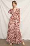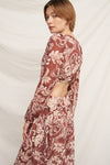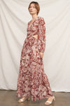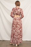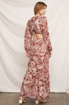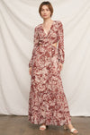 Long Sleeve Printed Maxi Dress with Cut-Out and Lurex