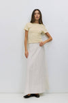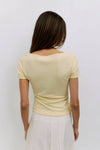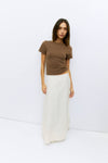 The Gia Tee is a form-fitting tee crafted from a soft midweight knit for a comfortable, everyday silhouette. Featuring a boat neck, semi-cropped length, and short sleeves, it offers a clean, modern finish.