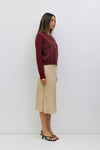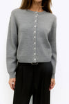 The Merlot Cardigan is a relaxed, cropped silhouette crafted from heavy sweater knit for warmth and texture. Featuring a crew neck, long sleeves, full button front, and contrast twill tape trim along the button placket.