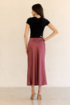 This maxi skirt is the epitome of elegance and simplicity. Crafted from a soft, lightweight satin fabric, it drapes beautifully to create a fluid silhouette. The high-rise waistline offers a flattering fit, while the smooth, seamless design lends a sophisticated and timeless appeal. Featuring a subtle side zipper for easy wear, this versatile piece can be styled for both casual and formal occasions, making it a wardrobe essential.