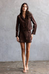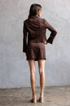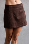 This mini dress features a luxurious faux suede fabric that delivers both softness and visual depth. The flattering A-line cut pairs perfectly with a high-waist design, while structured panels and seamless construction ensure a polished silhouette. An invisible side zipper keeps the look clean and streamlined. Crafted from a comfortable polyester-spandex blend that moves with you all day.