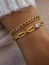 18K Gold Non-Tarnish Link Chain CZ Bracelet 18K Gold Plating Stainless Steel Cubic Zirconia Lead-free, Nickel-safe - Hypoallergenic - Water Resistant