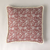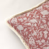Its richly layered floral pattern dances across a warm, rust-toned background, evoking the feel of hand-dyed textiles and sun-faded tapestries. Fringed edges lend a homespun finish. Whether styled solo on a favorite armchair or layered with other prints, this pillow brings a grounded, old-soul spirit into your space.