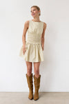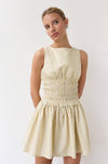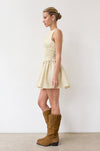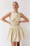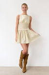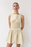 Dress it up or keep it casual in this butter yellow pinstripe mini. The wide smocked waist creates a flattering fit that moves with you, delivering comfort and elegance.