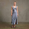 Slip into understated sophistication with this satin midi dress—a playful take on timeless elegance. The graceful V-neckline draws the eye while a cheeky side slit keeps things interesting, giving you freedom to move and groove. Whether you're dancing at a wedding, celebrating the holidays, or painting the town, this minimal beauty lets you shine without trying too hard.