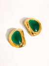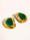 18K Non-Tarnish Green Stone Stud 18K Gold Plating Stainless Steel Resin Measurement (L x W inch): 1.54inx1.21in - Lead and Nickel Free - Hypoallergenic - Water Resistant