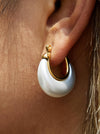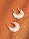 18K Gold Non-Tarnish Teardrop Hoop Earrings 18K Gold Plating Stainless Steel Measurement (L x W inch): 0.93 x 0.89 - Lead-free, Nickel-safe - Hypoallergenic - Water Resistant