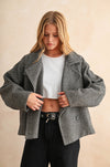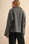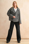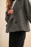 This herringbone cropped cape jacket combines a classic pattern with a modern silhouette, offering a refined layering piece that enhances any outfit with sophisticated style and versatility.
