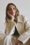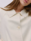 A refined take on a classic silhouette. This short trench jacket is crafted from a midweight cotton-Tencel blend for a structured yet breathable feel. Designed with raglan sleeves, adjustable buttoned straps, and front welt pockets, it balances function with clean, modern lines.