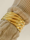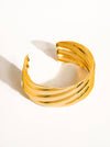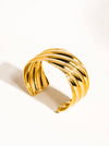 18K Gold Non-Tarnish Wavy Bold Bangle 18K Gold Plating Stainless Steel Measurement (L x W inch): 2.3 Diameter Width: 1.1 - Lead-free, Nickel-safe - Hypoallergenic - Water Resistant