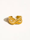 18K Gold Non-Tarnish Cross Spiral Ring 18K Gold Plating Stainless Steel Adjustable opening Width: 0.46 - Lead-free, Nickel-safe - Hypoallergenic - Water Resistant