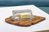 This elegant glass quarter-pound butter dish with matching cover is the perfect combination of classic 50s-retro chic and design-forward modern style.