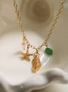 18K Gold Non-Tarnish Pearl and Shell Charm Necklace 18K Gold Plating Pearl Stainless Steel Chain Length (inch): 16 Extension Length (inch): 2 - Lead and Nickel Free - Hypoallergenic - Water Resistant