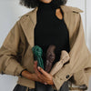The Mini Woven Bag is a refined, downsized version of the beloved Brigitte charm, designed to personalize your favorite bag with sophistication. Expertly crafted from recycled vegan leather, this micro-sized accessory securely holds your ID, earbuds, keys, and other small essentials. Its dimensions—7" W x 4.25" H x 0.25" D—with a 4" handle drop and zipper closure ensure both practicality and style in a compact form. Perfect for those who value meticulous design and sustainable materials.