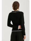 SELF: 45% POLYESTER 32% VISCOSE 23% NYLON - Collar - Front button closure - Contrast piping sleeves, bottom hem, and front placket - Fitted bodice - Slit detail at the sleeves - Model is wearing a size small - Imported