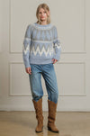 This cozy crewneck is designed with dropped shoulders, ribbed trim, and a relaxed fit that flatters every shape. Knit with a luxe blend of polyester, nylon, wool, and spandex, it combines structure with a plush hand feel — ideal for layering under coats or wearing as a statement piece on its own.