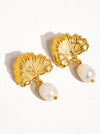 18K Gold Non-Tarnish Floral Pearl Earring 18K Gold Plating Stainless Steel Freshwater Pearl Measurement (L x W inch): 1.3 x 0.7 - Lead and Nickel Free - Hypoallergenic - Water Resistant