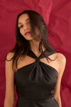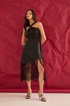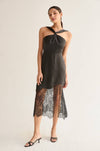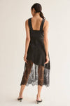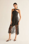 Add a touch of elegance to your wardrobe with this black midi dress featuring delicate lace accents.