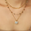 Crafted from stainless steel with an 18k gold plating, this necklace is hypoallergenic and non tarnish, making it an excellent choice for layering.
