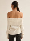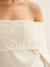 Off Shoulder Cable Knit Top SELF: 60% Cotton, 30% Nylon, 10% Merino Wool - Off-shoulder neckline - Cable knit pattern - Soft, cozy hand feel - Long sleeves - Model is wearing size small - Imported