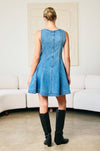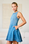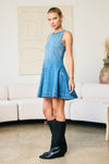 The Claudette Mini Dress has a flattering fit-and-flare design. It features convenient side pockets and is an excellent choice for layering with a lightweight turtleneck in the cooler fall and winter months.