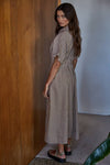 Woven Cotton Gingham Print Collared Short Sleeve Button Down Flare Maxi Dress with Waist Pin Tuck Detail (No Lining)