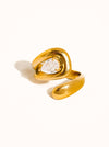 Câline Ring18K Gold Non-Tarnish Wrap CZ Ring 18K Gold Plating Stainless Steel Size 7 Circumference - Lead-free, Nickel-safe - Hypoallergenic - Water Resistant